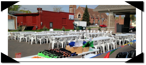 Party Table & Chair Rentals. Large, white 8' banquet tables & indoor/outdoor chairs are also available for rent. They are great for outdoor weddings, graduation parties, family reunions, business gatherings, or other events at your home or other location. Contact us at 715-339-3418 to reserve your event date.